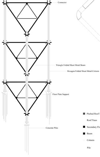This project explores architecture as a reversible system rather than a permanent object. The building is conceived as a modular assembly of prefabricated components that can be easily separated, reused, or reconfigured over time. Rather than relying on irreversible construction methods, the design prioritizes dry connections, standardized parts, and layered systems that allow individual elements to be removed without compromising the whole. By treating the building as a collection of parts with extended lifecycles, the project challenges conventional ideas of permanence and promotes adaptability, material longevity, and reduced waste. The result is a flexible architectural framework that can evolve alongside changing programmatic and environmental needs.