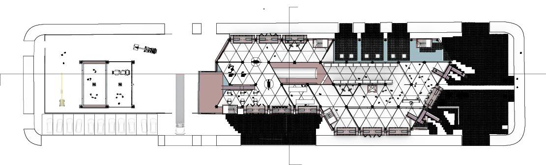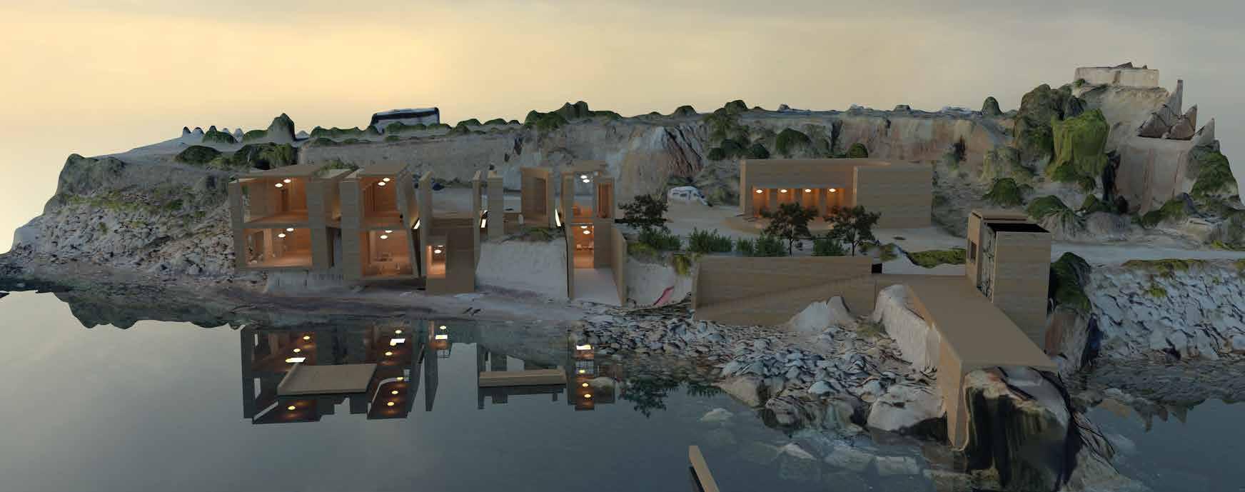 Using an existing abandoned, in Elba, Italy, retaining wall and dock I am restablishing this as a community center for active engagement. By carving into the wall we are able to make closed and opened spaced and connect the two different heights of the top of the retaining wall and the shoreline. The program being a place where you can catch your food using our floating docks that extend from the main building sequence. The building sequence is taken from the remake of a piece of a rubble box. The main sequence all the rooms are different in every dimension but the width making the connection between all of them and then other sequences expanding off of that one so the whole site is brought together through shape and layout. Then grill your catch inside the open grilled spaces and even sell it in our designated market space. Then the picnic spaces creating aresturant style building but done by you for you, without the business aspect.