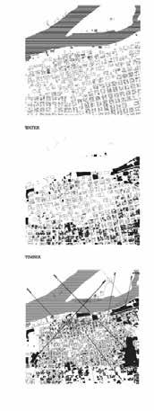 The Eureka Timber Research Center reimagines an old wood yard as a hub for innovation, conservation, and historical continuity, using timber construction to honor the site’s legacy while advancing sustainable forestry practices. Designed as an X-shaped structure, the building’s two intersecting wooden frames guide visitors into the site and create a dynamic connection to the surrounding water. The structure employs nested framing, where smaller wooden elements form a walkway with slatted viewing platforms, allowing visitors to observe timber fabrication processes below. The two arms of the X vary in height, accommodating different programs and interlocking in a central atrium space, reinforcing interaction between public and private functions, one side dedicated to public engagement and education, the other to research and production