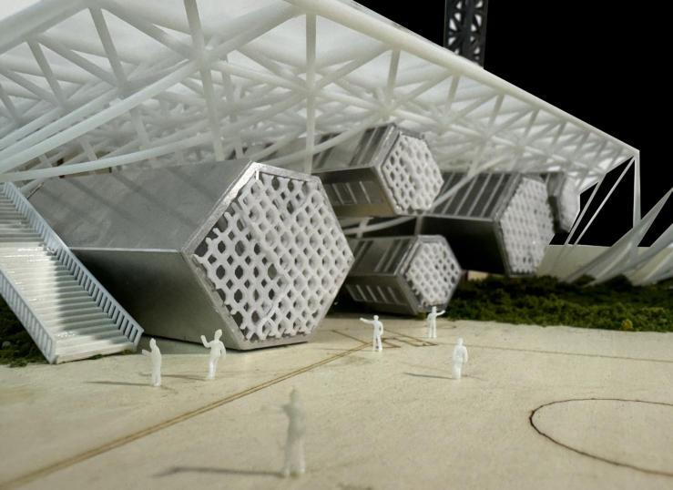 To reduce the waste of resources after the Olympics, the abandoned Olympic baseball stadium in Athens can be transformed into a community where refugees can temporarily gather. Reuse the original structure and space to provide refugees with an environment that can shelter them from wind and rainandisequippedwithinfrastructure.