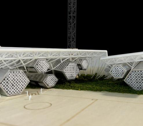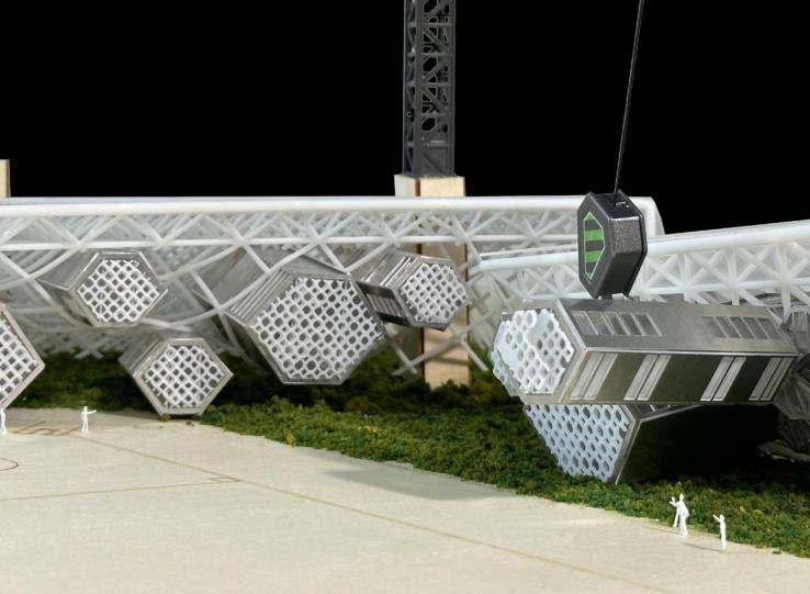 The bottom of the entire model site is made by cutting wooden boards, and the structural modification part adopts 3d printing technology. The insertion Spaces with different functions are made of aluminum alloy and acrylicmaterialsthroughlasercutting,and nallytheyareassembledonebyone.