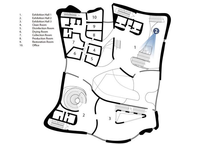 The different exhibition halls within the building adopt distinctive spatial forms, making the entire interior space more layeredandthusprovidingpeoplewitharichexperience.