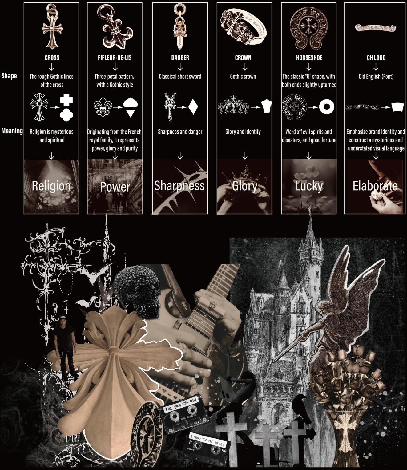 Chrome Hearts is a brand that seamlessly integrates gothic, rock punk, and street hip-hop aesthetics. Its initial product offeringsprimarilyfeaturedsilverjewelryandleathergoods.Thebrand'sdistinctiveandboldstylehasgarneredwidespread acclaimamongcelebritiesandfashionin uencers.