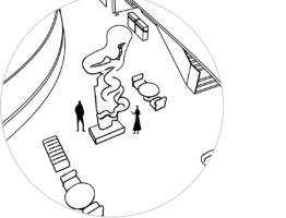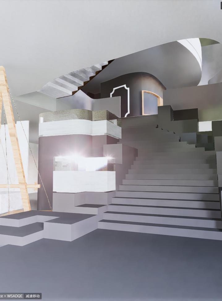It combines a central stage with a spiral staircase running through the exhibition hall, highlighting the featureofbeingabletoviewfromallangles.Inthisway, one can experience up close the ultimate charm of fantasyandexpressivenessindramaticart.