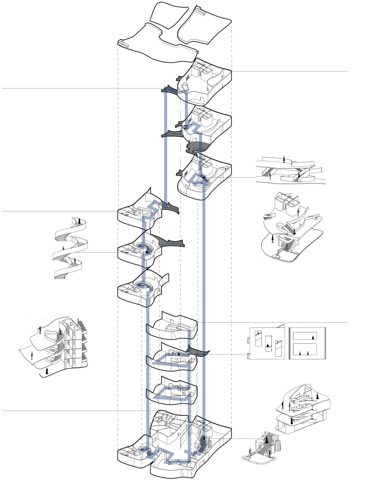 Spacesofdi erentfunctionsareevenlydistributedthroughoutvariousareasofthebuilding,allowingpeopleto choosenearbycommunityservices.