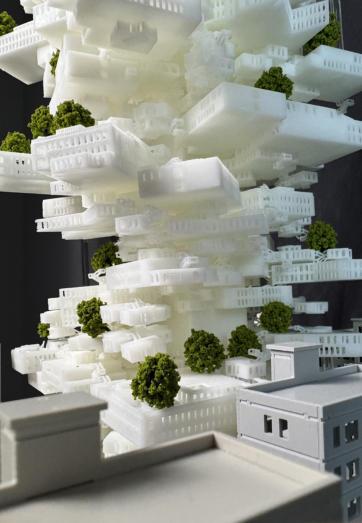 Thisisaconstructionmodelthatcanbe in nitelyreplicated.Whenencountering areaswiththesameproblems,itprovides moreresidentialcommunitiesforpeople andreducestheproblemofdensehousing. Thisbuildingisaverylargestructure.It formsasharpcontrastwiththeverydense residentialbuildingsaround.