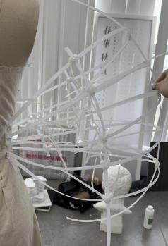 Theexhibitionhallisdividedintothreesections,eachofwhichintegratesdi erentformsofstagedesign styles.Theclothingexhibitionisalsodistributedindi erentexhibitionhallsaccordingtothedi erentvisual experiencesitaimstobringtopeople.Asectioninthemiddleisreservedforvariousactivities,suchas fashionshows.Theexhibitionhallsareconnectedbycorridors,allowingpeopletowalkalongtheroutesthey like,whichcanbringavarietyofdi erentexperiences.