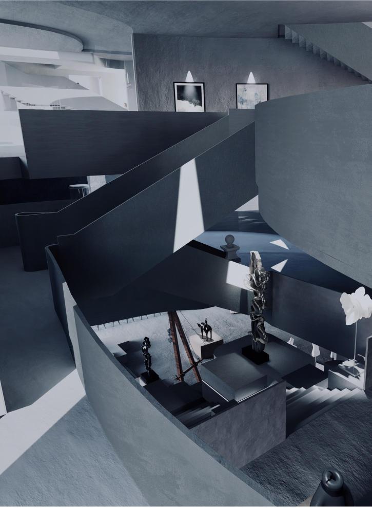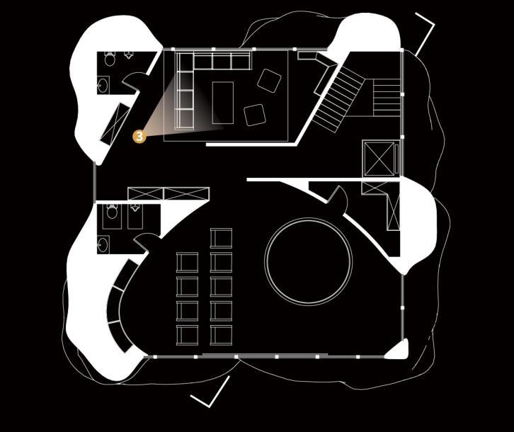 Theplatformisequippedwithgreenplants,providingpeoplewithaplacetorestandshade.Di erentSpaces interweavewitheachother,allowinglighttopenetrateeachspaceandenhancingthelightinge ect.Thisavoids theproblemofSpacesblockingeachother,thuspreventingtheinteriorfrombeingtoodark.