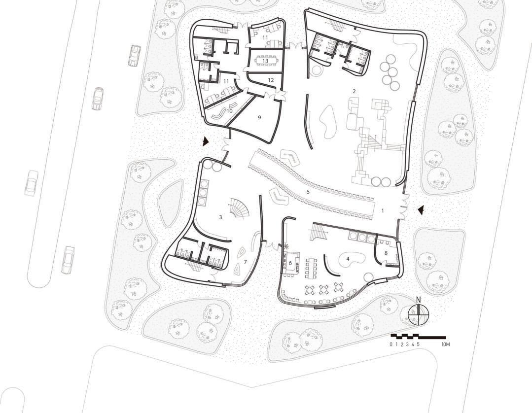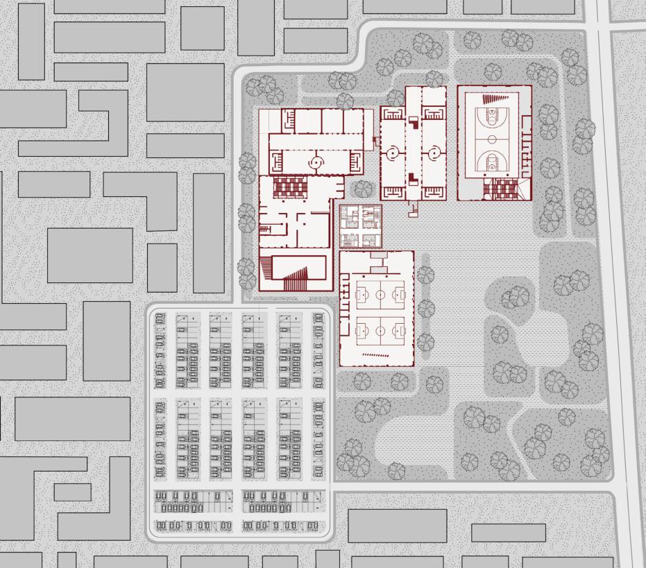 Spacesofdi erentfunctionsareevenlydistributedthroughoutvariousareasofthebuilding,allowingpeopleto choosenearbycommunityservices.