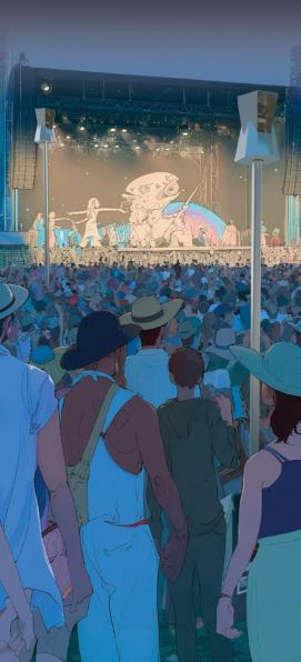 Spatially, it combines an extended stage and uses a staggered approach to allow the audiencetotravelbackandforthtodi erent periods to closely observe the stage play costumes.