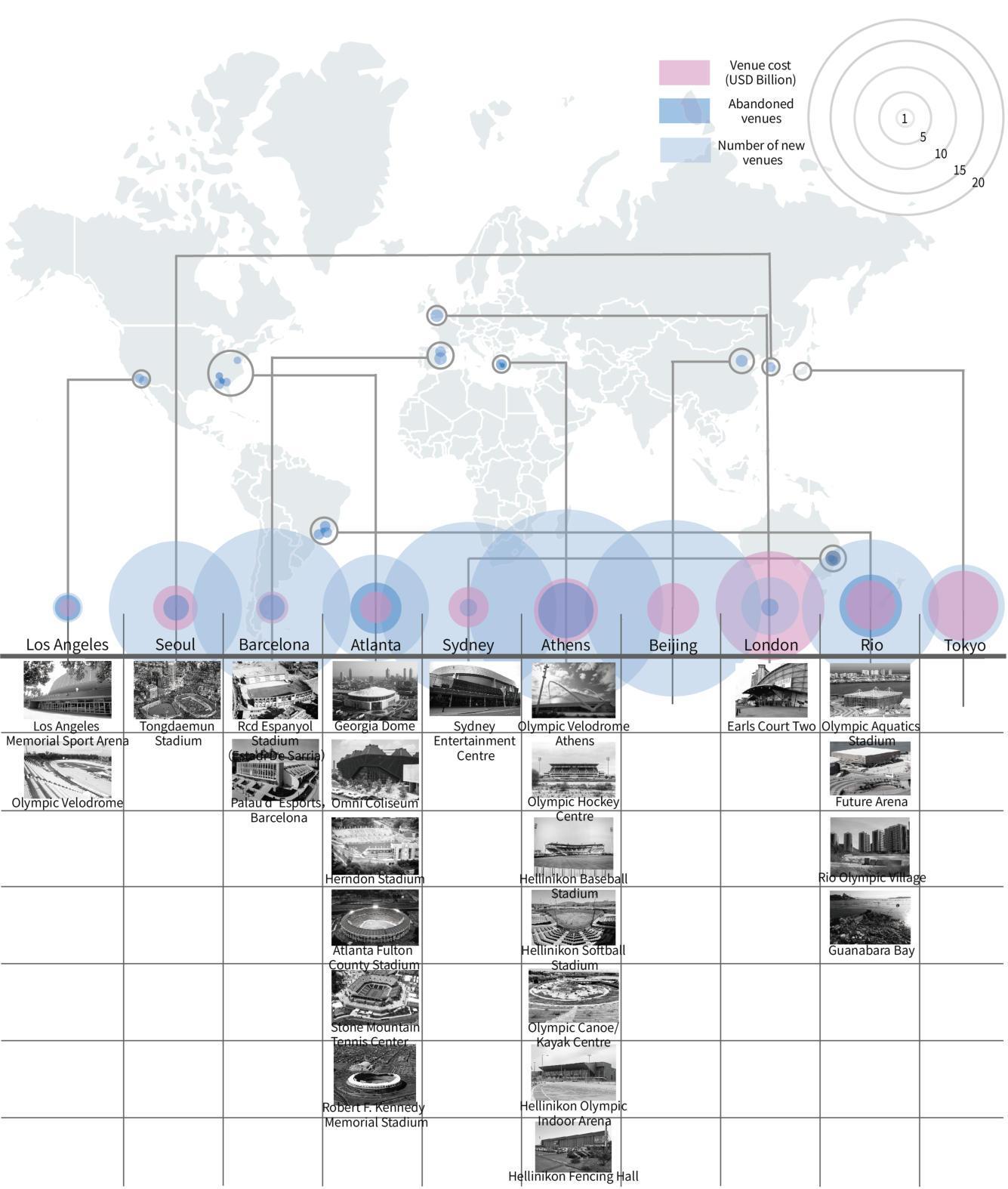 A large amount of funds has been invested in the construction of venues for each Olympic Games. However, after the Games, many venues are abandoned forvariousreasonsandcannolongerbeused,seriouslycausingawasteofland resources.Amongthem,AthensandAtlantahavemoreseriousproblems.