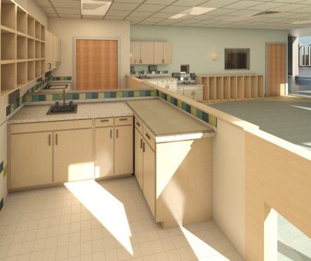 This is a project that I participated in while working for Iron Horse Architects. It was a modernization project for several facilities on the client’s campus in Maryland. The project scope consisted of assembling a design intent package to re-configure and re-design the spaces in order to make them function more efficiently and meet their modern needs. The spaces we worked on included the main vestibule, health care unit, credit union, fitness center, cafeteria, childcare center and science center.
