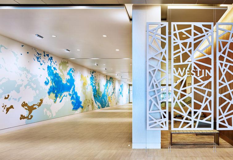 The addition of the Hotel and Transit Center to Denver International Airport (DEN) included three independent, yet physically integrated projects: The 519 room Westin Denver International Airport Hotel, which includes a conference center, restaurant and Grab N’ Go cafe; a public transit center with new check-in stations and security hall for travelers arriving by train; and an open air public plaza to serve as a connection to the existing Jeppessen Terminal, a venue for performances and exhibits as well as a location for relaxation and dining.
