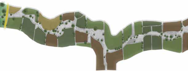 The sections show the land profile of the whole trail including the river bed and the change in type of vegetation throughout. Man-made changes have been made partially.