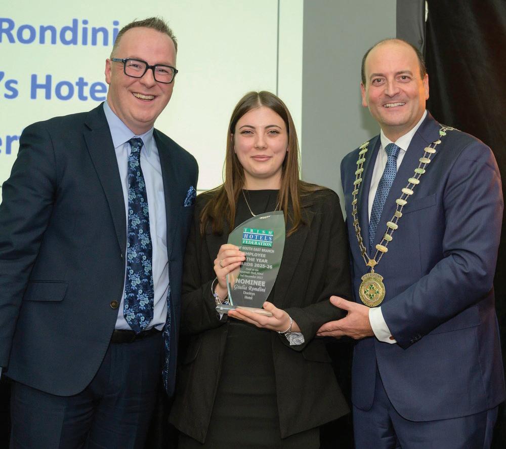 Giulia Rondini, Food & Beverage Supervisor at Dooley’s Hotel, Waterford was named the 2025 Irish Hotels Federation (IHF) South East Branch ‘Employee of the Year’ at the Christmas Gathering and Employee of the Year Awards. Giulia has worked at Dooley’s for over two and a half years and is currently completing a full-time International Management course at SETU (South East Technological University). Colleagues say Giulia’s commitment plays a vital role in making every guest’s experience memorable and seamless. On the night, ‘Special Merit Awards’ were presented to Linzie Jadoo (Riverside Park Hotel), Natasha Maguire (Talbot Hotel Carlow) and Alice Cahill (Majestic Hotel Tramore). There were also two ‘Highly Commended Awards’ for Ela Morat (Kilkenny River Court Hotel) and Marie O’Flaherty (The Hoban Hotel, Kilkenny).