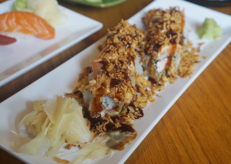 Notable sushi rolls include the dragon roll, which features shrimp tempura and the hip hop roll which stars spicy tuna and imitation crab. You can also order lunch or dinner specials that come with sushi plus soup or salad.