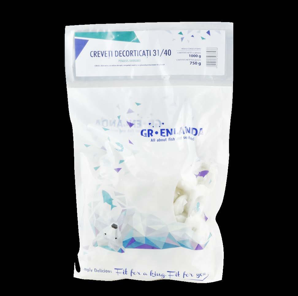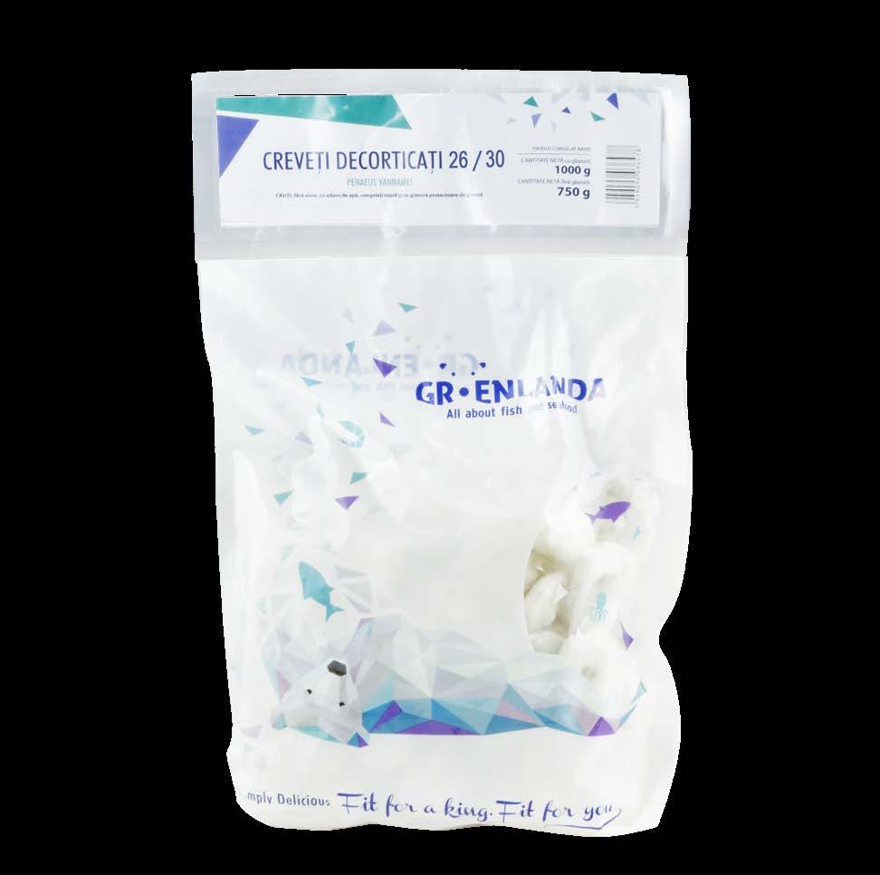Sushi Ebi 3L (WT) 30 pcs. 180 g 20 Creveți 31/40 FRIP Frip Pink shrimp 31/40 800 g F244 Creveți Vannamei decorticați 26/30 Peeled vannamei shrimps 1 kg 10