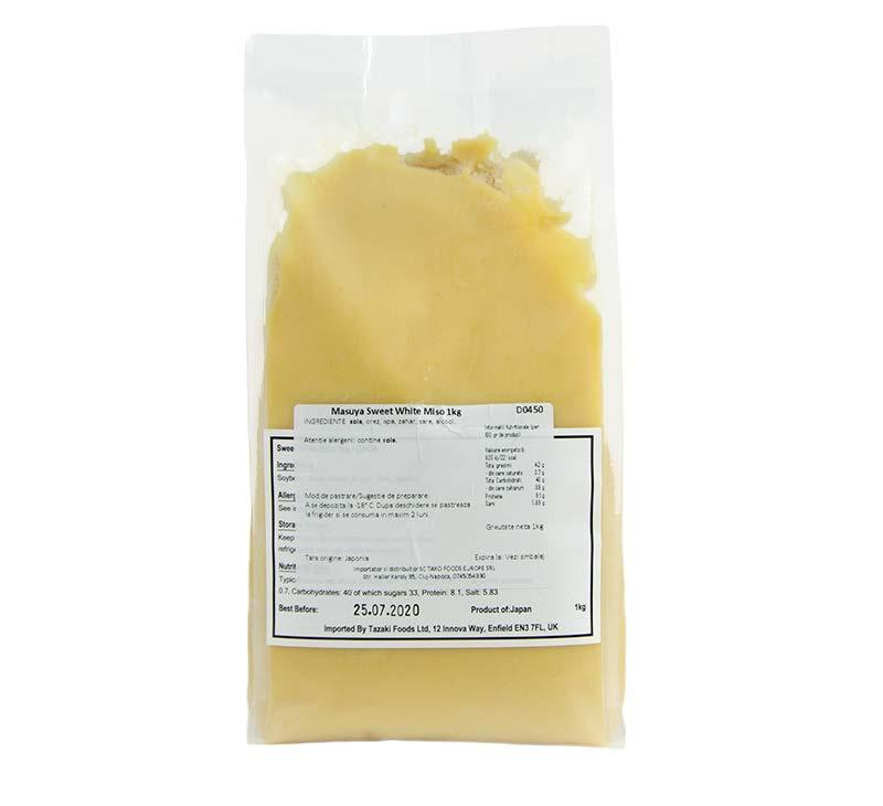 37 alge, tofu, miso si soia seaweed, tofu, miso and soy products , Pastă miso roșie HANAMARUKI Hanamaruki red miso paste 1 kg 10 D0476 Pastă miso albă HANAMARUKI Hanamaruki white miso paste 1 kg 10 D0477 Pastă miso albă MASUYA Masya white miso 1 kg 12 4301 Pastă miso roșie MASUYA Masuya red miso 1 kg 12 4302 Pastă miso naturală HIKARI Hikari natural miso paste 750 g 8 4203 Pastă miso albă dulce MASUYA Masuya Sweet White Miso 1 kg D0450 Pastă miso albă Shiromiso white paste 1 kg 10 4201 Alge wakame tăiate OTT OTT Seaweed wakame 100 g 20 4318 TAKAOKAYA Roasted Seaweed Premium Gold 50 buc. Seaweed sushi nori 50 sheets 125 g 10 K3341