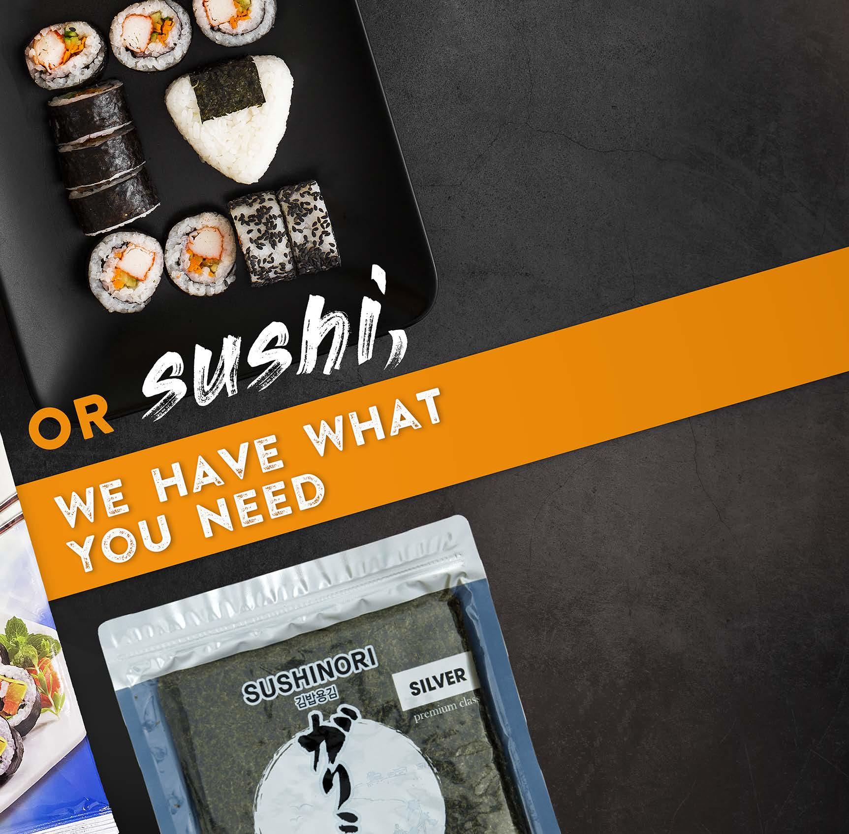 38 Catalog 2023 Alge nori gold 50 buc. Seaweed sushi nori 50 sheets 125 g 80 4316 Alge nori KC 10 buc. KC Nori seaweed 10 sheets 20 g 100 4314 Alge nori Silver INAKA Seaweed sushi nori inaka 140 g 20 4344