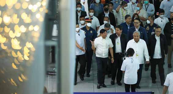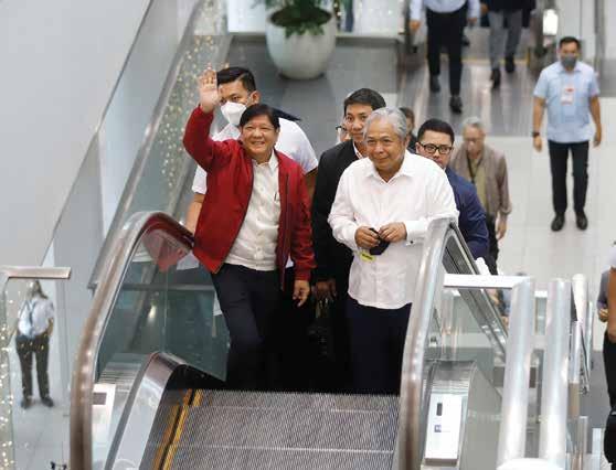 AIRPORT INSPECTION. President Ferdinand R. Marcos Jr. waves to the crowd as he arrives at the Ninoy Aquino International Airport Terminal 3 on Friday, Jan. 6 during an inspection following the technical glitches last New Year’s Day. The president is accompanied by Transportation Secretary Jaime Bautista. PNA photo by Alfred Frias