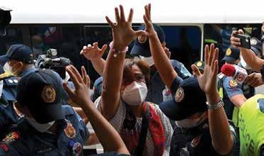 Former Philippine senator and human rights campaigner Leila de Lima (C) waves as she arrives to attend her hearing at the Muntinlupa Trial Court in Manila on October 28, 2022. De Lima, an outspoken critic of former president Rodrigo Duterte and his deadly drug war, has been behind bars since 2017 on drug trafficking charges that she and human rights groups have called a mockery of justice and payback for going after Duterte. Philstar.com file photo