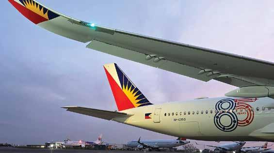 “As Philippine Airlines continues its transformation, we remain mindful that our journey is inseparable from that of our country,” he said. “Our role as the flag carrier is not simply commercial. It is a responsibility that we take very seriously. We exist to connect people, support livelihoods, and contribute meaningfully to the country’s development, consistent with the ideals of Bagong Pilipinas.” the new flagship features the airline’s iconic “sunrise” livery accented with a commemorative “85 Years” decal, reflecting both its legacy and its forward-looking ambitions. five A350-1000 aircraft are scheduled to join the fleet in 2026, with the remaining three arriving in 2027. President marcos led guests in touring the stateof-the-art aircraft, which is set to elevate PAL’s long-haul transpacific services to the U.s mainland and canada. configured in a spacious tri-class layout, the A350-1000 accommodates 382 passengers, with 42 seats in Business class, 24 in Premium economy, and 316 in economy. the cabin experience, developed in partnership with aircraft cabin design studio Lift Aero Design, places a strong emphasis on comfort, privacy, and functionality. the “mabuhay studios” Business class features 42 full-flat suites with sliding doors for enhanced privacy, arranged in a 1-2-1 layout to ensure every passenger has direct aisle access. each suite is equipped with a 20-inch 4K personal entertainment screen. complimentary full flight messaging, browsing, and streaming are available via inflight Wi-fi. Additional amenities include inseat power outlets, UsB-A and UsB-c charging ports, and wireless charging docks.