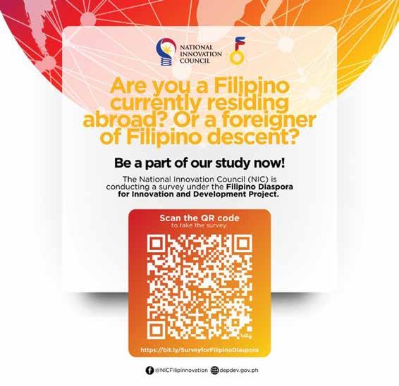 We invite you to participate in the survey conducted by the National innovation council's filipino Diaspora for innovation and Development Project" which aims to formulate policies and