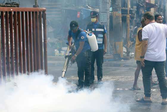 PREVENTING DENGUE. A worker of the Manila Disaster Risk Reduction and Management Office drives away dengue-carrying mosquitoes by fogging their breeding sites, in Sampaloc, Manila on Thursday (Jan. 22, 2026). The initiative aims to curb the spread of dengue fever, which has seen a resurgence in urban areas. PNA photo by Yancy Lim