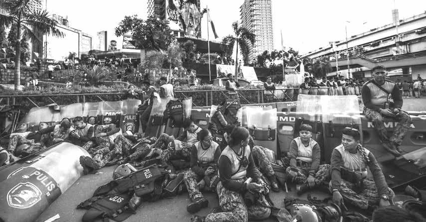 Over the next four days, hundreds of thousands, and by many estimates millions, gathered along EDSA in prayerful protest, forming human barricades between loyalist troops and rebel camps.