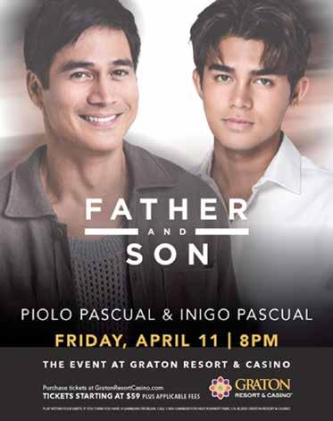 Award-winning filipino star Piolo Pascual and his son, Iñigo Pascual, take the stage for a special father-son performance, delivering a night of smooth vocals and timeless songs. Don’t miss out on all the action! tickets sell out fast, so purchase yours now at www. gratonresortcasino.com.