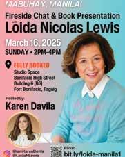 Loida Nicolas Lewis is slated to have a fireside chat and book presentation in Manila on March 16, 2025 hosted by Karen Davila. Philippine Daily Inquirer’s Lifestyle Editor Lita Logarta (1987-1994)