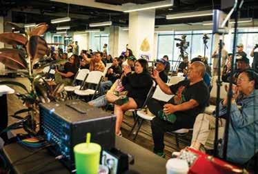a packed Search to Involve Pilipino Americans (SIPA) headquarters office in Historic Filipinotown, Los Angeles.