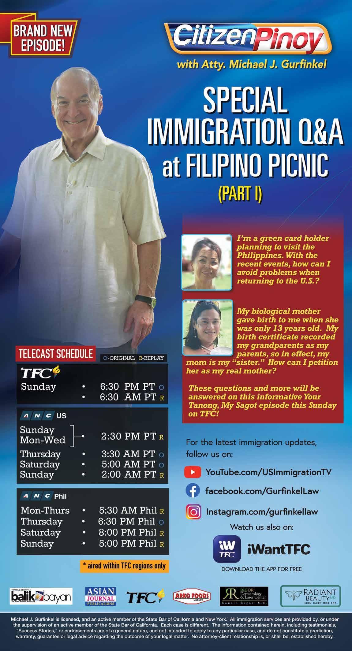 providing scholarships, and supporting those in need both in the U.s. and the Philippines. events like this memorial Day picnic bring generations together in a community setting where important questions can be asked and answered. in Part 1 of this 2-part series, leading U.s immigration Attorney michael J. Gurfinkel responds to questions from community members.