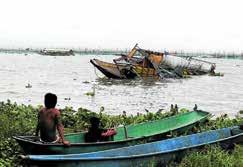 elijah Felice Rosales Philstar.com TRAGIC TRIP. The wreckage of the motorized boat Aya Express is seen in this photo taken on July 28, 2023, a day after it capsized in Laguna Lake, near the port of Binangonan, Rizal. Twenty-seven passengers died in the accident.