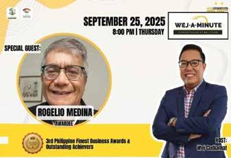 IT will be an honor to guest this coming September 25 on Wej A Minute, the program of Wej Cudiamat, who will be honored as Best Male News Anchor in the Philippines at the 3rd Philippines Finest Business Awards on September 30 at Newport Performing Arts Theater, Pasay City.