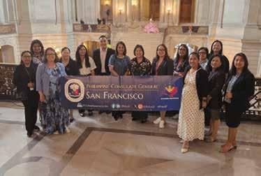 Deputy Consul General Maria Paz Cortes (7th from the left), Consul Rowena Pangilinan-Daquipil (6th from the left), Consul Marc Benigno (8th from the left), Vice Consul Glaiza Quarteros (5th from the left), PTIC-Silicon Valley Trade Commissioner Anne Marie Kristine Umali (9th from left) and consulate personnel at the balcony of the City Hall. San Francisco PCG photo