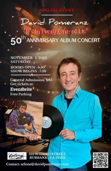 • Tickets: Available on Eventbrite under Upward Spiral Entertainment Inc.https://www. eventbrite.com/e/david-pomeranz-live-in-los-angeles-50th-anniversary-album-concert-tickets-1681476574699