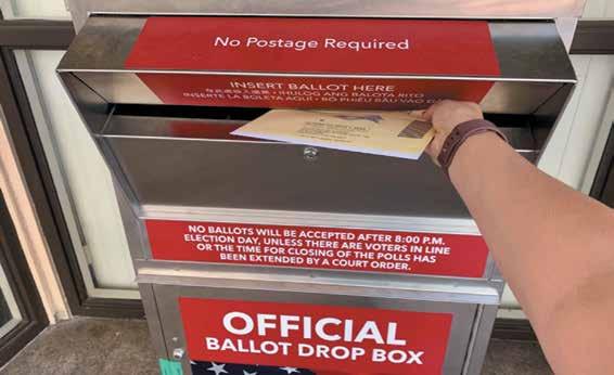 through Nov. 4. On the final day of voting, Nov. 5, all vote centers and official ballot drop boxes will be open from 7 a.m. to 8 p.m. With a significant number of contests on the ballot, the voting process may take longer than usual. The Registrar’s office recommends using early voting options to avoid long lines. You have the option of casting your ballot by mail, at an official ballot drop box or at any vote center around the county. If you plan on voting in person, be prepared. Read your pamphlet and mark your selections on the sample ballot in advance. When you go inside the voting booth at the vote center, you can refer to your choices on the sample ballot to conveniently mark your selections on your official ballot. You can find an official ballot drop box or vote center near you inside your voter information pamphlet or you can look it up online at sdvote. com.