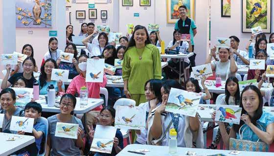 MEETING THE BIRDS OF THE PH. Students, kids, and parents present their painted bird artworks, supervised by art educator Kathleen Baraan (center), during the “More Than The Maya” event at Fisher Mall, Quezon City on Wednesday, October 9. The event, open until Oct. 12, features storytelling and a Philippine bird exhibit. PNA photo by Robert Oswald Alfiler