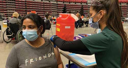 young woman gets a COVID-19 vaccine at San Diego State University’s Viejas Arena. File photo/www.countynewscenter.com