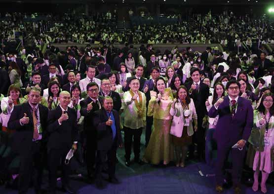 PUBLIC DEFENDERS. Senator Christopher Lawrence “Bong” Go (in white barong), Public Attorney’s Office (PAO) chief Persida Rueda-Acosta, and other PAO lawyers show the “thumbs up” sign during the 7th MCLE-Accredited National Convention of Public Attorneys at the plenary hall of the Philippine International Convention Center in Pasay City on Thursday, Oct. 13. Go served as a guest of honor and speaker at the event. PNA photo by Joey O. Razon