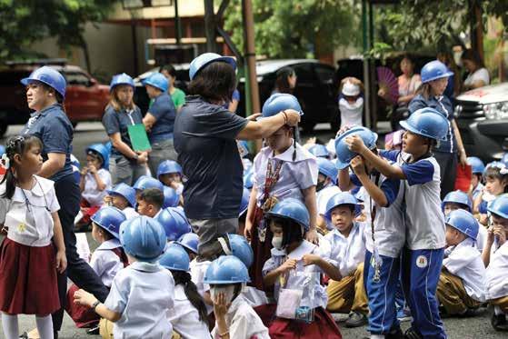 IT’S A DRILL. Grade school pupils of the Rafael Palma Elementary School in Manila participate in an earthquake drill and preparedness orientation on Thursday, October 16. The students learned about the use of safety gear, such as hard hats, the “drop, cover, and hold” protocol, and the importance of listening to their teacher’s instructions during emergencies.