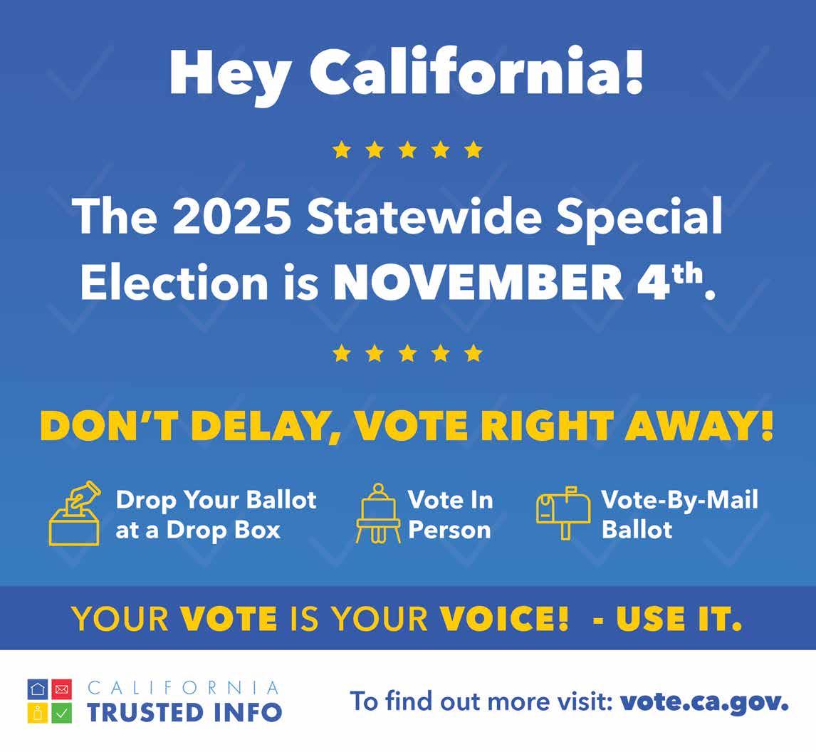 ley Weber is urging residents to make their voices heard in the upcoming November 4 special election, emphasizing secure ballot access, multilingual assistance, and same-day registration as key features of California’s voter-friendly system.
