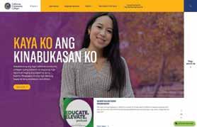 Best of all, for many California students, community college can be completed at no cost, providing a solid foundation that can support them wherever they want to go—whether that be a fouryear college or university, into a new career via career education, technical training for career advancement or more. The California Community Colleges Chancellor’s Office appreciates and celebrates the diversity and contributions of the multicultural communities that make up our great state. It remains committed to ensuring students from all backgrounds are supported to reach their goals, enabling them to improve their lives, and the lives of those around them. Providing culturally responsive resources like the Tagalog I Can website helps achieve this vision and ensures students have equitable access to higher education. With the addition of Tagalog, I Can now provides six language offerings including Spanish, Chinese, Vietnamese, Korean, and English. Learn more about California community colleges and explore the new Tagalog-language website by visiting ICanGoToCollege.com and clicking the tab at the top left.