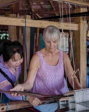 Banlue Handicraft Center and Homestay in Nam Bak offers an immersive experience in traditional Lao culture. Visitors learn weaving, dyeing and paper making. The homestay features comfortable accommodation, scenic mountain views, a peaceful garden and warm, local hospitality – all providing an authentic taste of rural life!