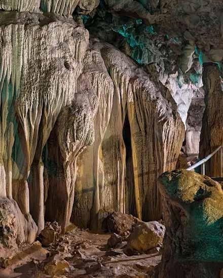 Tham NangFa and Tham None caves offer visitors two distinct and memorable subterranean experiences. Tham NangFa dazzles with spotlights that illuminate its striking limestone formations. In contrast, Tham None offers an adventurous journey through water-filled passages which visitors can explore by kayaks.