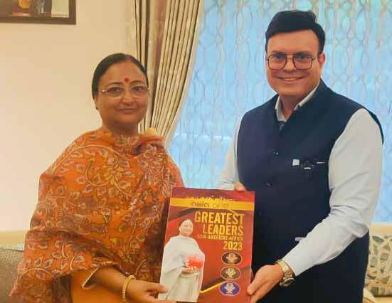 to R) Shri. Rajat Raj Shukal, Global Head and Principal Partner, AsiaOne Media Group along with Sadhvi Niranjan Jyoti, Minister of State for Consumer Affairs, Food & Public Distribution; and Rural Development, The Government of India.