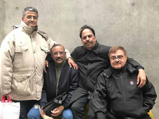 Puran Dawar seated with friends Gautam Kaul, Dr. Ajay Prakash, and Vijay Bhargava, sharing a moment of camaraderie.
