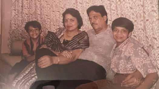 A cherished moment from the late 80s: Puran Dawar alongside his wife Madhu, and their children, Sambhav and Saksham.
