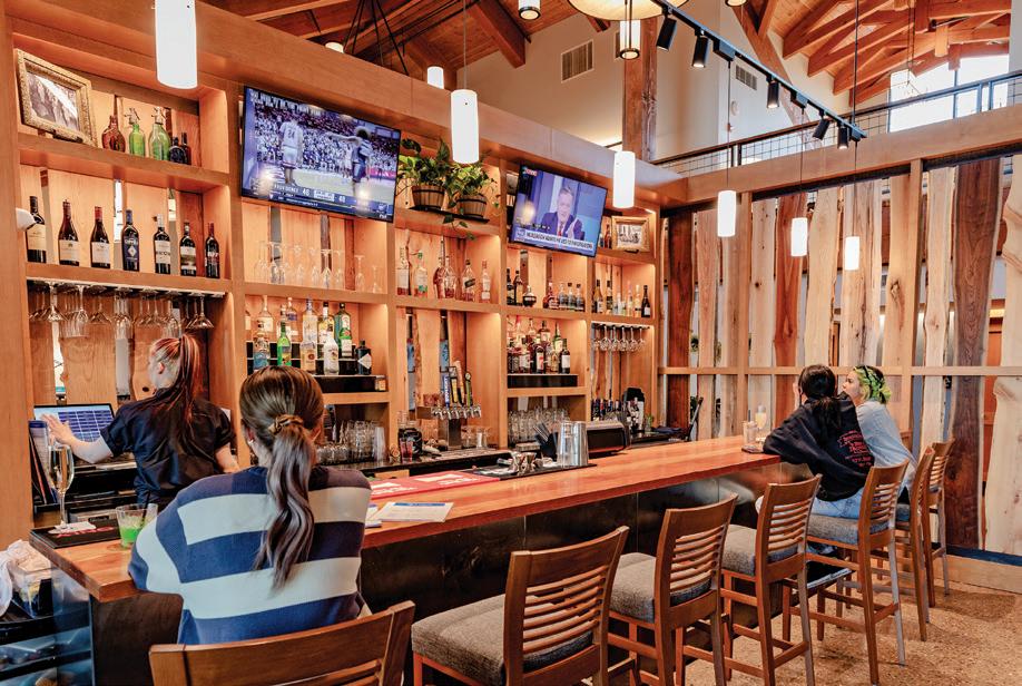 A cozy fireplace creates a relaxing environment while you enjoy your favorite drink and soak up the scenic views. Unique features, such as a locally sourced live edge wall add to the ambiance of Rock House Pub.